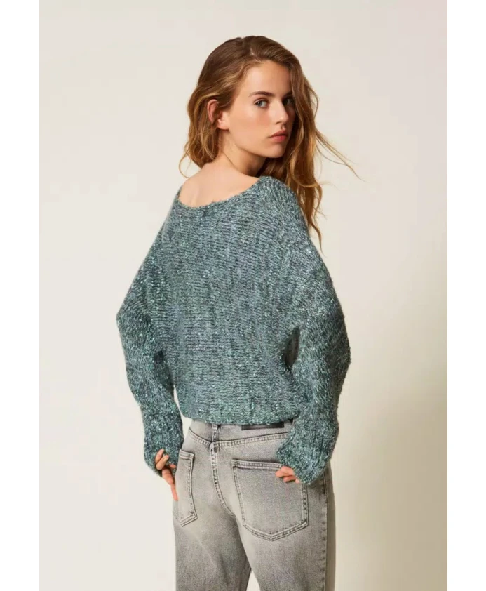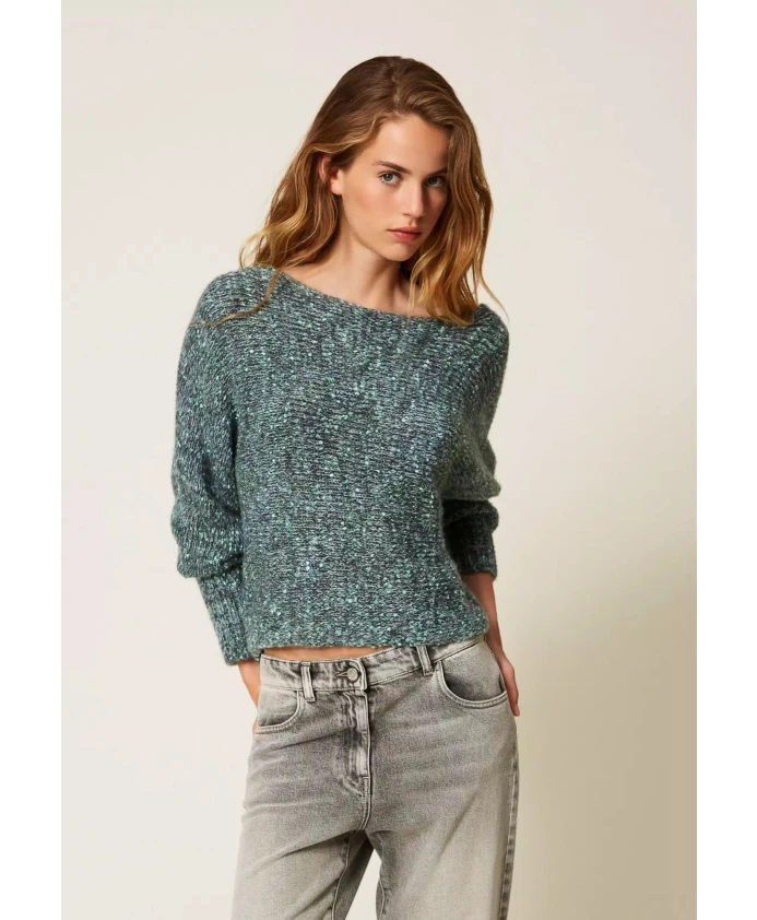 Пуловер Twinset Actitude, изготовленный из пряжи мулине, отличается свободным, мягким силуэтом и эффектным узором «дреды». Вырез-лодочка и рукава-кимоно делают его идеальным для многослойных образов в повседневном стиле. Ключевые особенности: Зеленый | Разноцветный | Полиэстер | Пряжа мулине с узором «дреды» | Вырез-лодочка | Длинные рукава-кимоно | Манжеты в стиле «сапоги» | Мягкий, свободный силуэт | Размеры и посадка: Рост модели: 178 см | Размер на модели: S/40 | Свободный крой | Свободный силуэт | Состав и уход: 40% полиэстер | 27% полиамид | 24% акрил | 6% шерсть | 3% мохер | Ручная стирка. Не отбеливать. Не сушить в сушильной машине. Гладить при максимальной температуре 110°C. Бережная химчистка с использованием тетрахлорэтилена. Сушить в горизонтальном положении в тени.