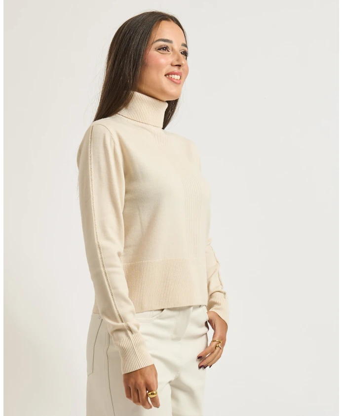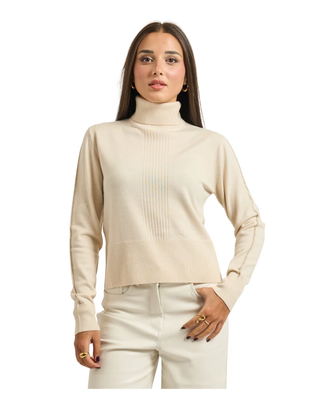 Свитер Patrizia Pepe Essential с высоким воротником - это трикотаж из чистой шерсти, сочетающий высокий воротник с едва заметными люрексовыми вставками для создания изысканных повседневных многослойных образов. Он обеспечивает мягкую теплоизоляцию и свободный силуэт для универсального стиля. Ключевые особенности: Белый | Шерсть | Теплоизоляция | Мягкий, легкий трикотаж | Высокий воротник | Длинные рукава | Однотонная вязка (расата) | Люрексовые вставки на рукавах | Логотип Fly на затылке | Размеры и посадка: Рост модели: 1,65 м, размер S | Свободный крой | Состав и уход: Основной материал: 100% шерсть | Вставка: 71% полиэстер, 29% полиэфирная пленка | Ручная стирка или бережная химчистка (перхлорэтилен). Инструкции по уходу см. на этикетке.