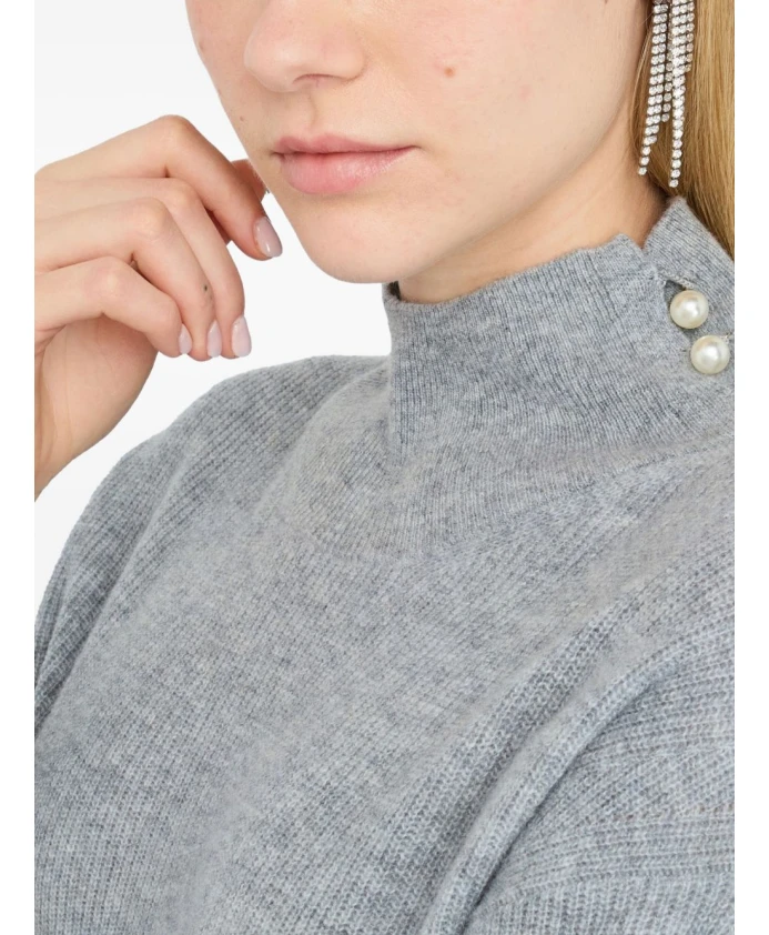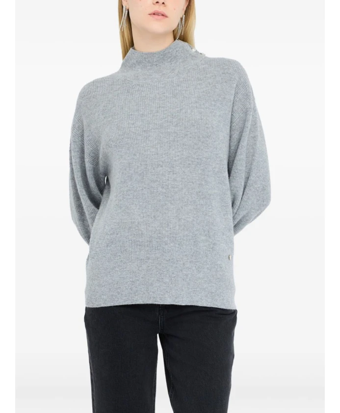 Свитер Liu Jo из шерсти и кашемира отличается мягкой, роскошной вязкой, созданной для комфортного многослойного ношения. Смесь шерсти и кашемира, а также декоративные детали делают его универсальным элементом гардероба. Основные характеристики: Серый | Шерсть и кашемир | Подходит для многослойного ношения | Воротник-поло с бисерной отделкой | Длинные рукава-фонарики | Ребристые манжеты | Металлический логотип на спине | Состав и уход: 90% шерсть | 10% кашемир | Ручная стирка; стирать наизнанку; не тереть; не отбеливать; не сушить в сушильной машине; сушить в горизонтальном положении; гладить при температуре не выше 110°C (не гладить декоративные элементы); профессиональная химчистка (перхлорэтилен, щадящий режим).