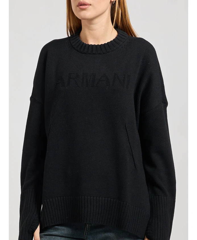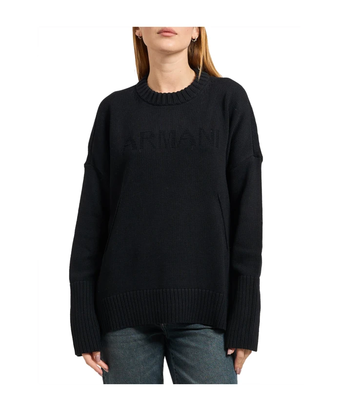Хлопковый свитер с круглым вырезом Armani Exchange, черный