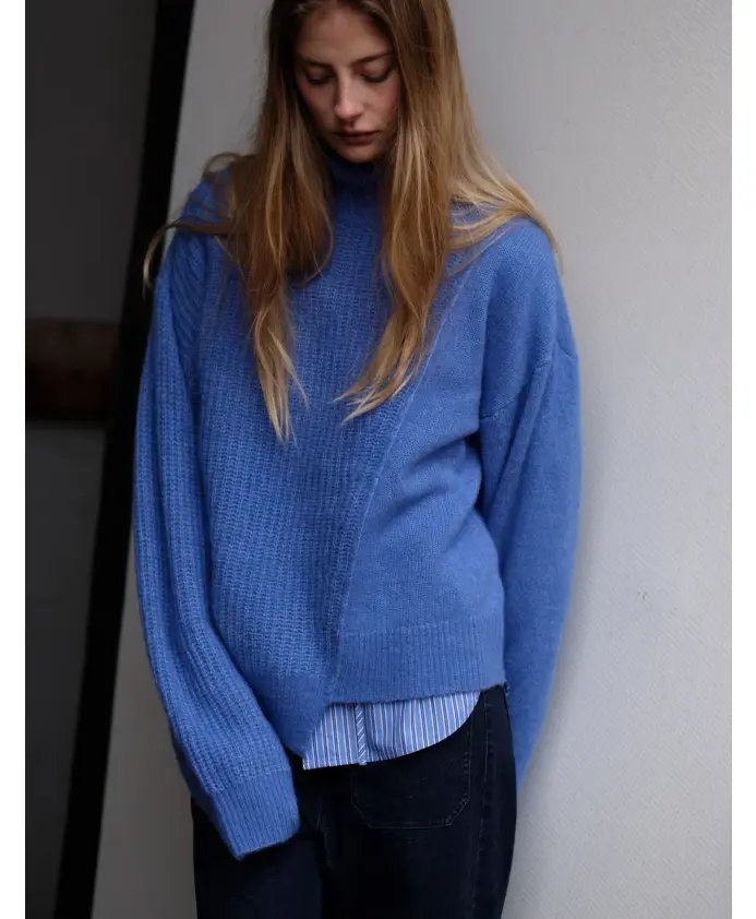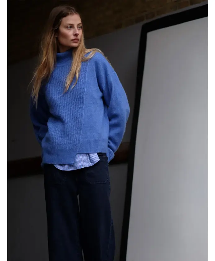 Свитер Designers Remix Verona Stitch сочетает в себе мягкую смесь шерсти альпаки и свободный силуэт, обеспечивая воздухопроницаемость и тепло. Уютный воротник-стойка и асимметричный низ придают этому минималистичному трикотажному изделию изысканный вид, идеально подходящий для многослойных образов. Ключевые особенности: Синий | Смесь шерсти альпаки | Воздухопроницаемый | Теплый | Подходит для многослойных образов | Воротник-стойка | Асимметричный низ | Текстурированная вафельная вязка | Гладкие трикотажные вставки | Минималистичный силуэт | Размеры и посадка: Свободный крой | Состав ткани и уход: 35% полиамид | 33% альпака | 32% шерсть | Ручная стирка