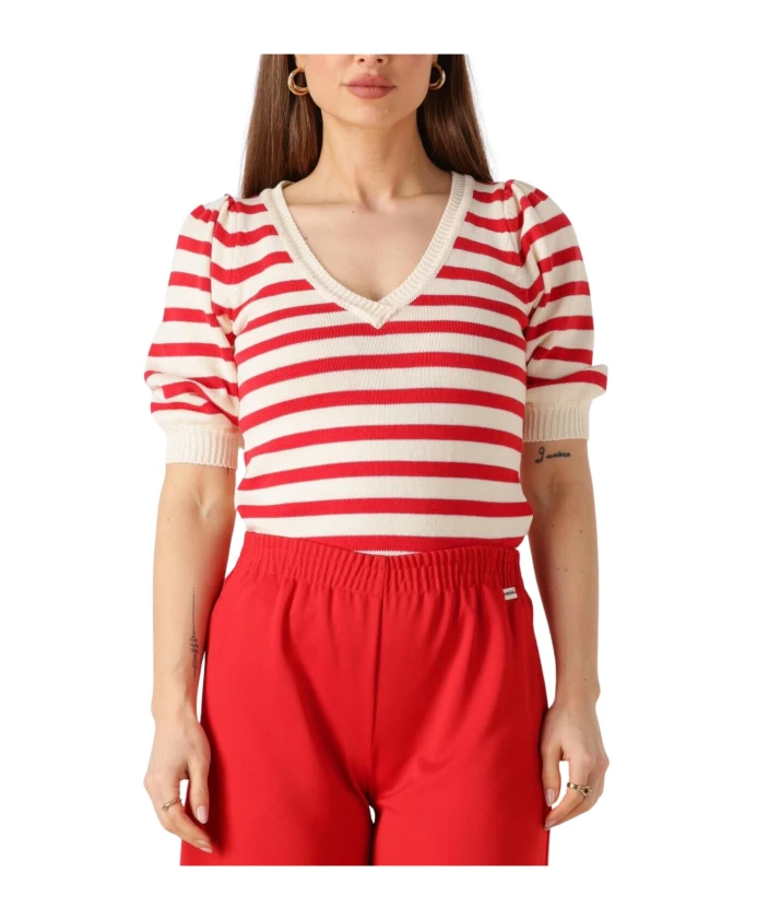 Алый полосатый свитер POM Amsterdam с V-образным вырезом идеально дополнит повседневный образ. Мягкий хлопковый трикотаж и рукава-фонарики длиной до локтя делают его удобным выбором для неспешных походов по магазинам или неформального обеда. Ключевые особенности: Разноцветный | Красный | Хлопок | Мягкий на ощупь | V-образный вырез | Рукава-фонарики длиной до локтя | Полосатый узор | Ребристые манжеты и нижний край | Размер и посадка: Маломерит; рекомендуется заказывать на размер больше. | Состав и уход: 100% хлопок | Машинная стирка при 30°C; не сушить в сушильной машине; гладить при температуре не выше 110°C; не отбеливать; сушить в щадящем режиме.