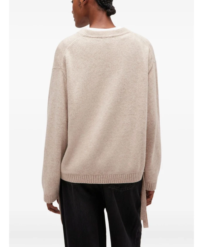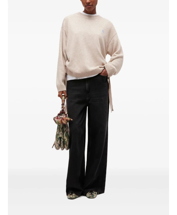 Свитер Ganni из шерстяной смеси, дополненный завязками по бокам, создает элегантный и непринужденный образ. Круглый вырез и ребристые манжеты делают его теплым и удобным трикотажным изделием для повседневной носки. Ключевые особенности: Бежевый | Шерсть | Круглый вырез | Ребристые манжеты | Завязки по бокам | Логотип | Размер и посадка: Свободный крой | Состав ткани и уход: 60% шерсть | 40% вискоза | Ручная стирка; не отбеливать; не сушить в сушильной машине; не гладить; химчистка (любой растворитель, кроме трихлорэтилена); сушить в горизонтальном положении; использовать средство для стирки шерсти; не замачивать; придать форму во влажном состоянии.