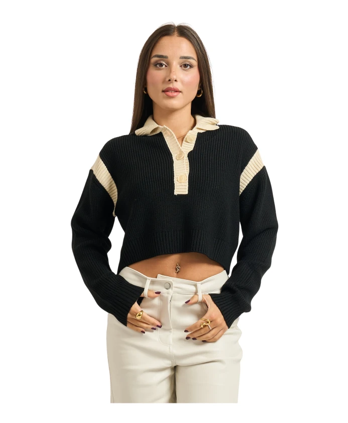 Свитер Patrizia Pepe Racing сочетает в себе воротник-поло и яркие цветовые блоки из шерстяной смеси, предлагая мягкую, спортивную вязку для повседневных образов. Ключевые особенности: Черный | Шерстяная смесь | Терморегулирующий | Мягкий на ощупь | Короткая планка на пуговицах | Необработанные манжеты | Воротник-поло | Цветовые блоки | Английская резинка | Спущенные плечи | Вязание средней плотности | Размеры и посадка: Длина рукава (от воротника): 82 см - Размер 36 | Длина: 47 см - Размер 36 | Ширина подмышками: 57 см - Размер 36 | Мягкий, свободный крой | Рост модели 1,65 м, размер S | Состав и уход: Шерстяная смесь