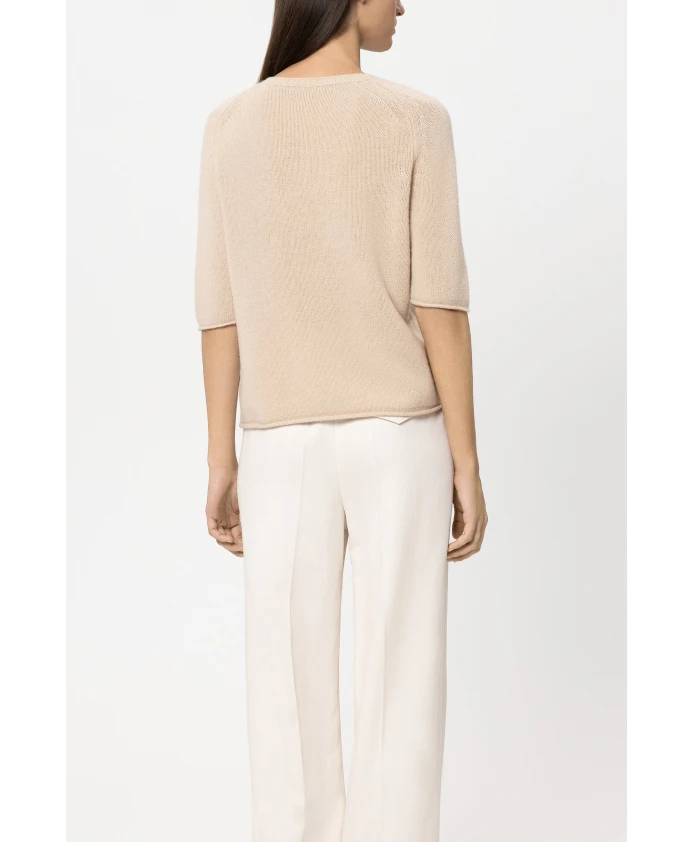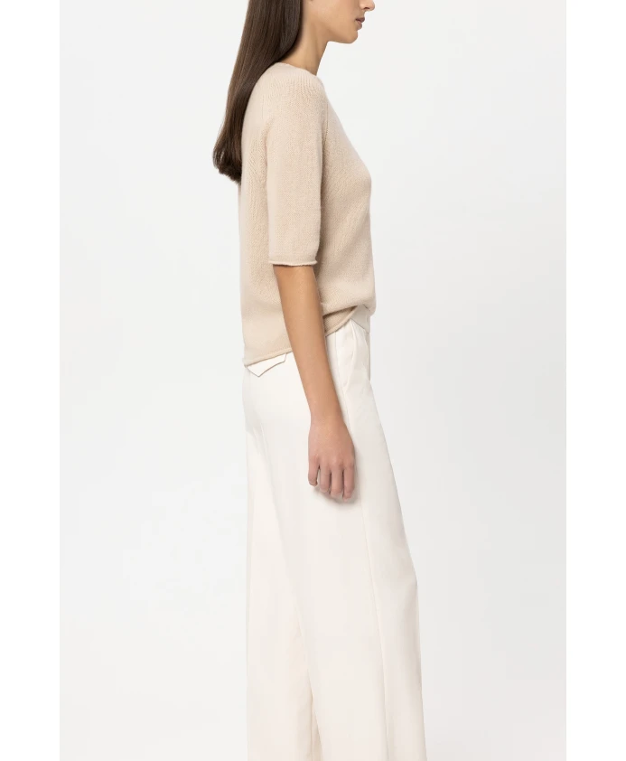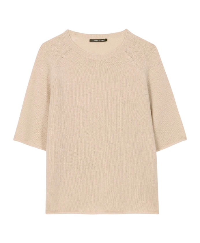 Свитер Luisa Cerano из смеси кашемира нежного верблюжьего оттенка, свободного кроя, с мягкой шерстяно-кашемировой текстурой. Универсальная вещь для многослойных образов на каждый день и в стиле smart-casual. Ключевые особенности: Бежевый | Нежный верблюжий | Шерсть | Свободный крой | Круглый вырез | Короткие рукава | Подвернутый низ | Укороченные детали | Размеры и посадка: Рост модели 178 см, размер 36 | Свободный крой | Состав и уход: 80% шерсть | 20% кашемир | Ручная стирка. Не отбеливать. Не сушить в сушильной машине. Не гладить при высокой температуре. Профессиональная химчистка (P).