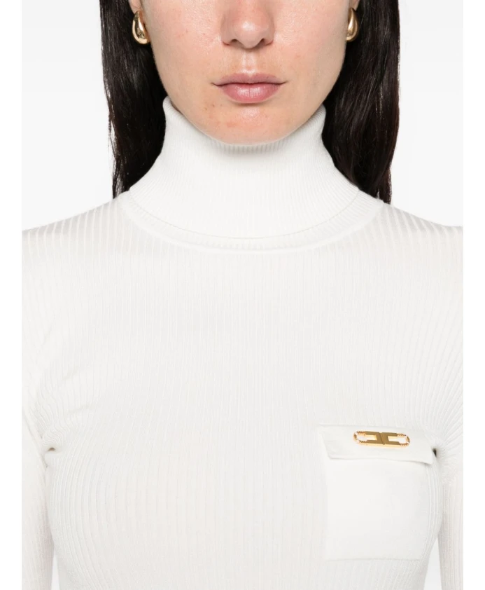 Ребристый свитер с высоким воротником Elisabetta Franchi, белый