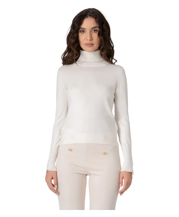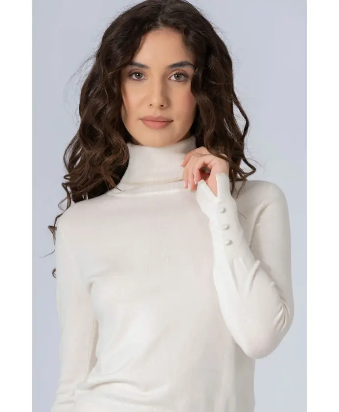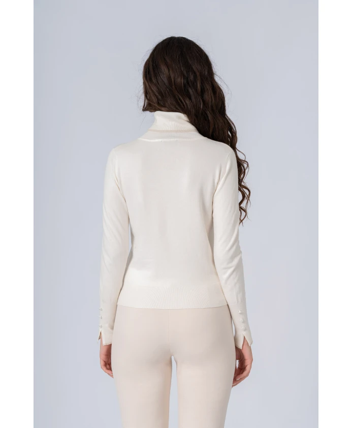 Свитер BANAPANGAX от Kocca - это вязаный свитер с длинными рукавами и высоким воротником, созданный для приталенного силуэта. Он имеет ребристый низ и облегающие манжеты на трех пуговицах для элегантного вида. Ключевые особенности: Белый | Bianco | Вискоза | Эластичный | Вязаный материал средней плотности | Манжеты на трех пуговицах | Высокий воротник | Длинные рукава | Длина до талии | Гладкий ребристый воротник | Ребристый низ | Размеры и посадка: Приталенный | Рост модели 175 см, размер S/42 | Состав и уход: 45% вискоза | 41% полиамид | 12% шерсть | 2% эластан