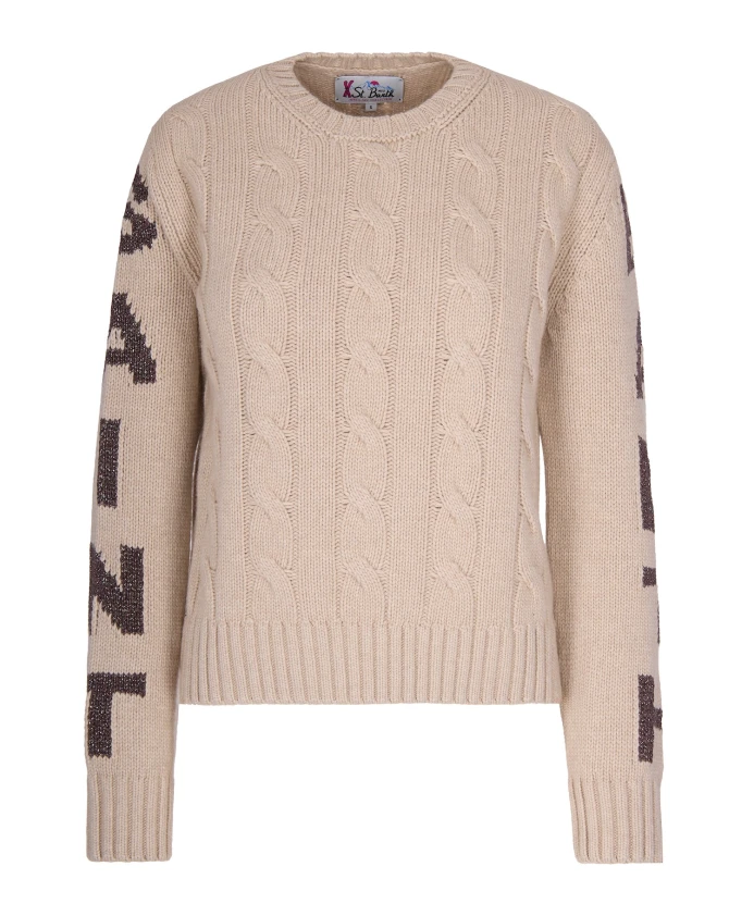 Свитер с круглым вырезом и косами Mc2 Saint Barth, бежевый