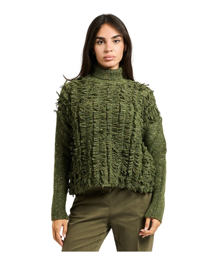 Свитер с бахромой Manila Grace, зеленый