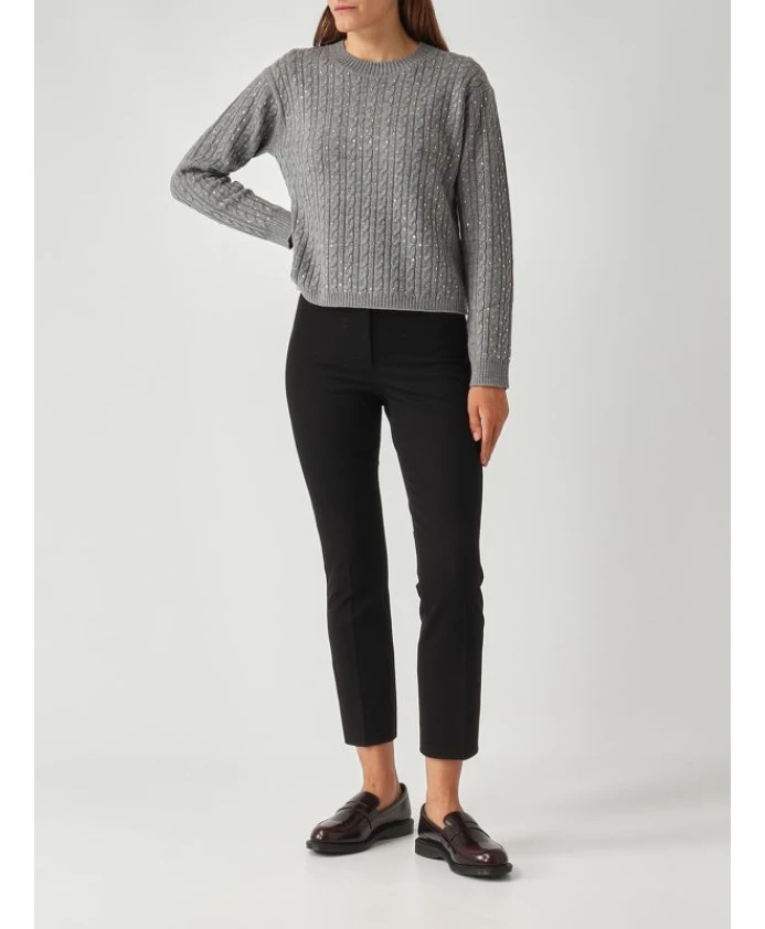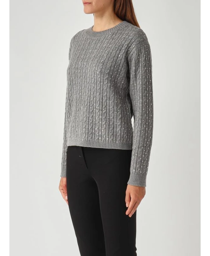 Свитер MAX MARA STUDIO Ussuri - это изысканный вязаный свитер с круглым вырезом из чистой натуральной шерсти, обеспечивающий тепло и комфорт в элегантном силуэте. Узор «косичка» и ненавязчивые украшения делают его подходящим как для повседневных образов, так и для более торжественных случаев. Основные характеристики: Серый | Средне-серый | Натуральная шерсть | Теплый и утепляющий | Мягкий на ощупь | Круглый вырез | Узор «косичка» | Декоративные детали | Ребристые манжеты и нижний край | Посадка: Свободная | Состав и уход: 100% натуральная шерсть