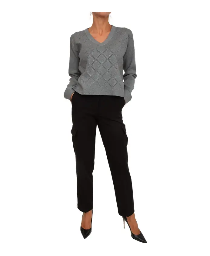 Вискозный свитер Blugirl со стразами сочетает в себе V-образный вырез, кружевной ромбовидный узор и термотрансферные стразы. Он создан для того, чтобы дополнить как повседневные, так и более нарядные образы благодаря изысканной отделке. Ключевые особенности: Серый | Гриджио | Вискоза | Эластичная ткань | V-образный вырез | Длинные рукава | Спущенные плечи | Кружевной ромбовидный узор | Термотрансферные стразы | Размеры и посадка: Свободный крой | Состав ткани и уход: 62% вискоза, 38% полиэстер