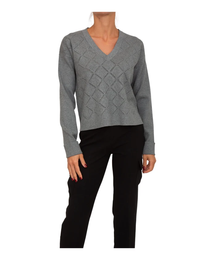 Вискозный свитер со стразами Blugirl, серый 29 510₽