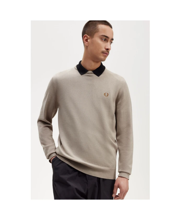 Классический свитер с круглым вырезом Fred Perry, бежевый