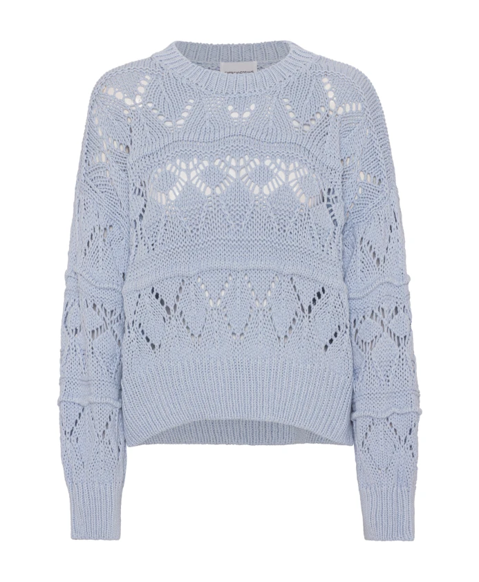 Оставайтесь в комфорте и выглядите стильно в хлопковом свитере Cassie от AMERICANDREAMS с уникальным узором на передней, задней части и рукавах. Изготовленный из мягкой и прочной 100% хлопковой пряжи, этот свитер идеально подходит для ношения поверх платья. Ключевые особенности: Светло-голубой | Синий | 100% хлопок | Круглый вырез | Спущенные плечи | Уникальный узор | Крой: Свободный | Состав и уход: 100% хлопок | Машинная стирка в холодной воде, сушка в барабане при низкой температуре