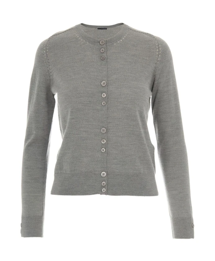 Свитер Liu Jo с круглым вырезом сочетает в себе чистую новую шерсть и классический силуэт с круглым вырезом. Он обеспечивает теплоизоляцию и идеально подходит для многослойных образов в повседневные дни и уютные вечера. Ключевые особенности: Серый | Чистая новая шерсть | Теплоизолирующий | Застежка на пуговицы | Подходит для многослойных образов | Круглый вырез | Длинные рукава | Прямой низ | Гладкая вязка | Размер и посадка: Стандартный крой | Состав и уход: 100% чистая новая шерсть