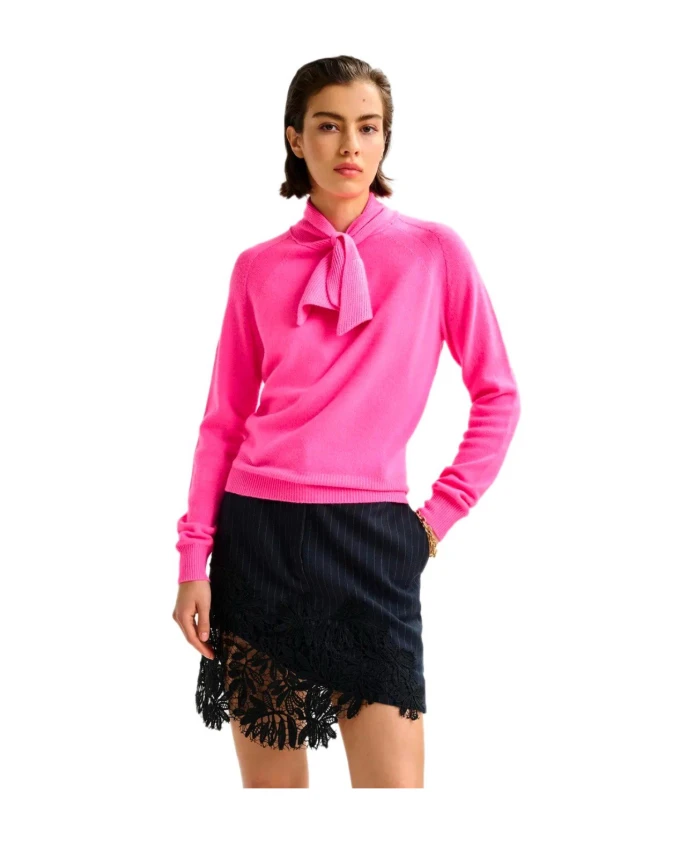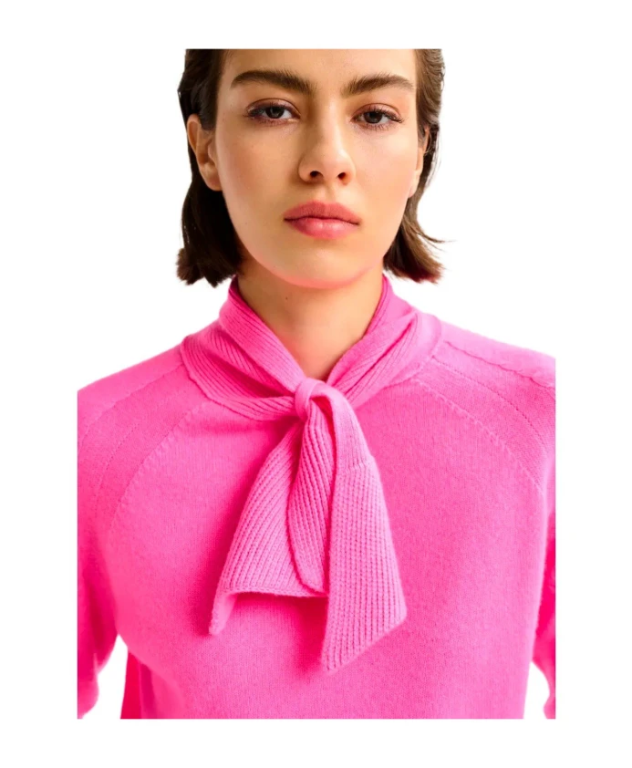 Свитер Invited от Essentiel Antwerp - это кашемировый свитер с завязками на воротнике, элегантный вариант как для повседневной носки, так и для более изысканных образов в стиле casual. Ключевые особенности: Розовый | Кашемир | Вязание средней плотности | Завязки на воротнике | Рукава реглан | Ребристые манжеты и нижний край | Деталь в виде шарфа из специальной ткани | Размеры и посадка: Свободный крой | Рост модели 177 см, размер S | Состав и уход: 100% кашемир | Ручная стирка
