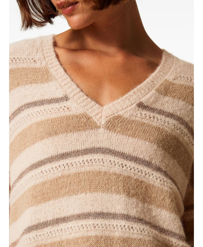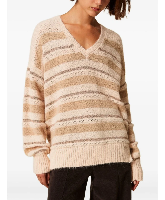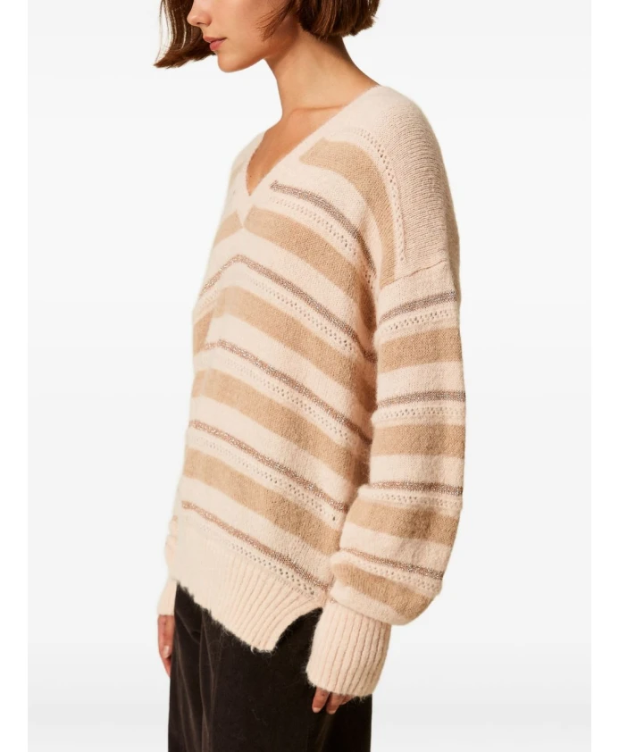 Полосатый свитер с V-образным вырезом Twinset, бежевый