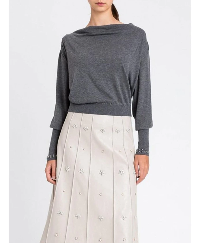 Пуловер ACTITUDE Actitude сочетает в себе комфорт и женственные детали. Водопадный воротник и рукава «летучая мышь» создают непринужденно-шикарный образ, идеально подходящий для повседневной носки. Ключевые особенности: Серый | Grigio Medio Melange | Водопадный воротник | Длинные рукава «летучая мышь» | Широкие ребристые манжеты | Оборки по плечевому шву | Манжеты, украшенные стразами | Ребристый низ | Укороченная длина | Размеры и посадка: Свободный крой