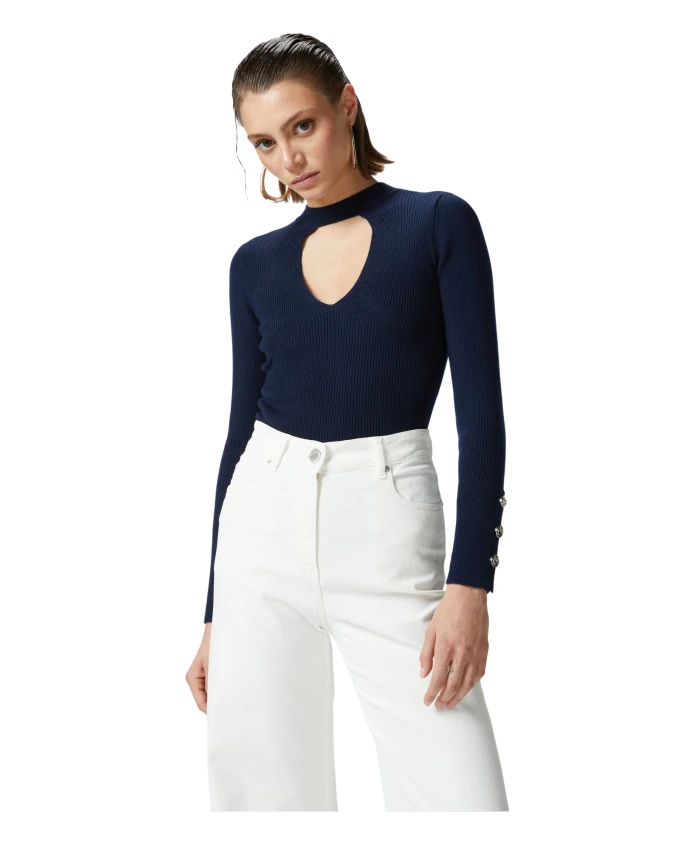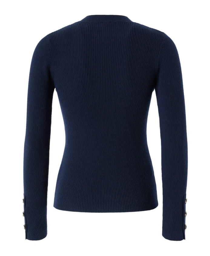 Оставайтесь стильными и в тепле в этом ребристом шерстяном свитере от Pinko, изготовленном из эластичной шерстяной смеси. Свитер имеет приталенный крой, небольшой воротник-стойку, вырез спереди и длинные рукава с манжетами на металлических пуговицах. Ключевые особенности: Синий | Шерсть | Круглый вырез | Длинные рукава с манжетами на металлических пуговицах | Вырез спереди | Размеры и посадка: Приталенный крой | Состав и уход: 75% шерсть | 25% нейлон