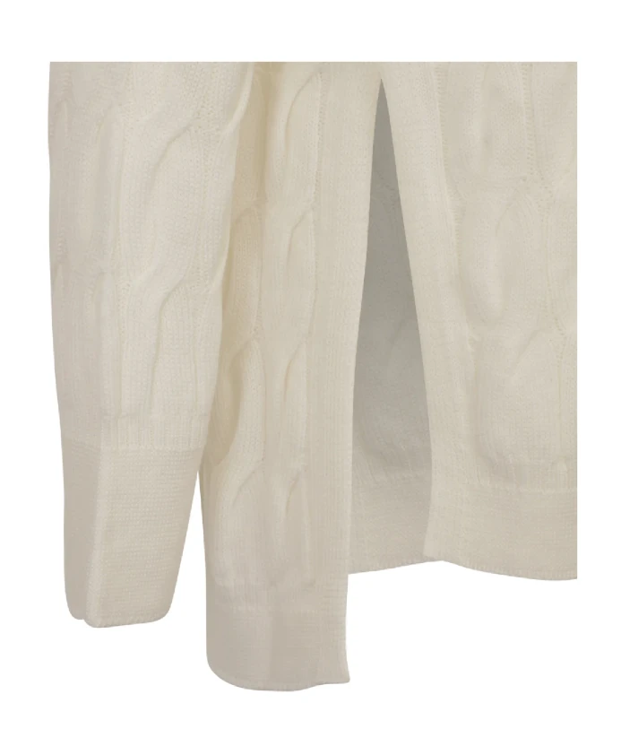 Свитер Quid от Max Mara - это вязаный свитер с круглым вырезом из натуральной шерсти, обеспечивающий тепло и комфорт на каждый день. Ключевые особенности: Белый | Натуральная шерсть | Теплый | Мягкий | Утепляющий | Круглый вырез | Длинные рукава | Вязаная текстура "косичка" | Ребристые манжеты и нижний край | Асимметричный нижний край | Боковые разрезы | Крой: Свободный | Состав ткани и уход: 100% натуральная шерсть | Только химчистка