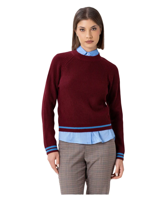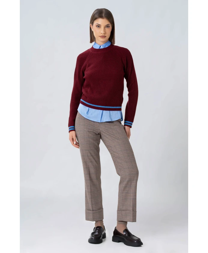 Полосатый свитер Koccoa с эффектом вязания - это короткий, плотный пуловер, отличающийся полосатыми краями. Он создан для легкого повседневного многослойного образа и имеет лаконичный силуэт с круглым вырезом. Ключевые особенности: Красный | Бордовый | Голубой | Круглый вырез | Длинные рукава | Длина до талии | Плотная вязка | Двойные полосы на манжетах | Одна полоса на талии | Размеры и посадка: Рост модели 175 см, размер S/42.