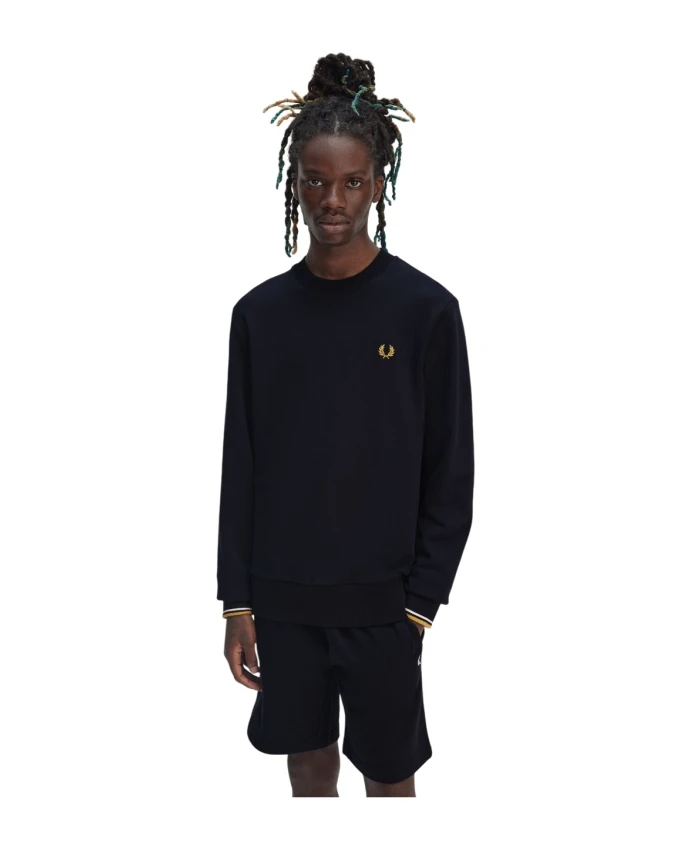 Оставайтесь в тепле и выглядите стильно в этом свитере Fred Perry с круглым вырезом, уютной подкладкой из ворсистого флиса и ребристой отделкой. Идеально подходит для зимних тренировок, этот свитер сочетает в себе комфорт и классическую спортивную эстетику. Ключевые особенности: Синий | Хлопок | Круглый вырез | Ребристая отделка | Двойные полосы на манжетах | Посадка и размер: Стандартный крой | Состав и уход: Машинная стирка