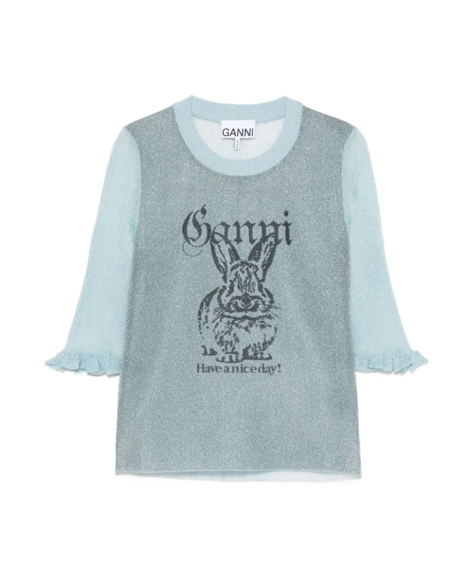 Светло-Голубой свитер, стильная модель Ganni, синий