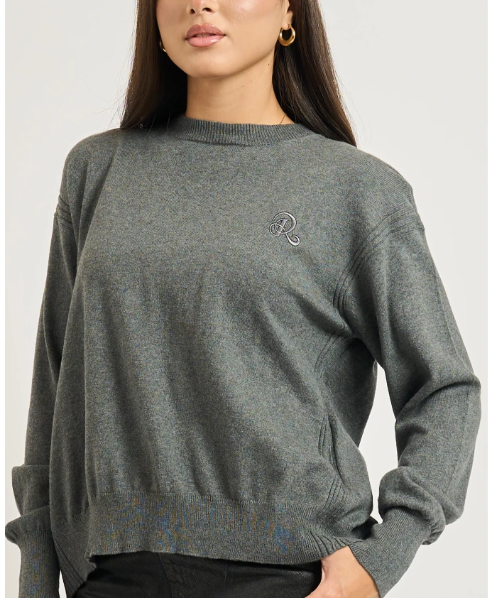 Свитер Relish с круглым вырезом - это мягкая трикотажная вещь из смеси кашемира, идеально подходящая для повседневного многослойного образа. Он имеет простой круглый вырез и небольшой вышитый логотип на груди для ненавязчивого брендинга. Ключевые особенности: Серый | Хлопок-кашемир | Круглый вырез | Длинные рукава | Вышитый логотип на груди | Состав ткани и уход: 95% хлопок | 5% кашемир