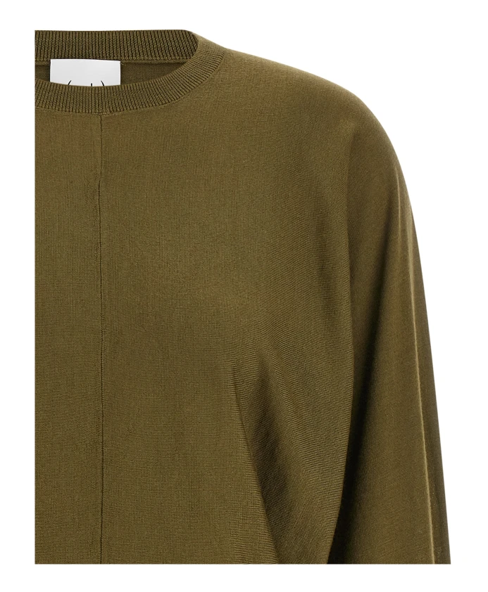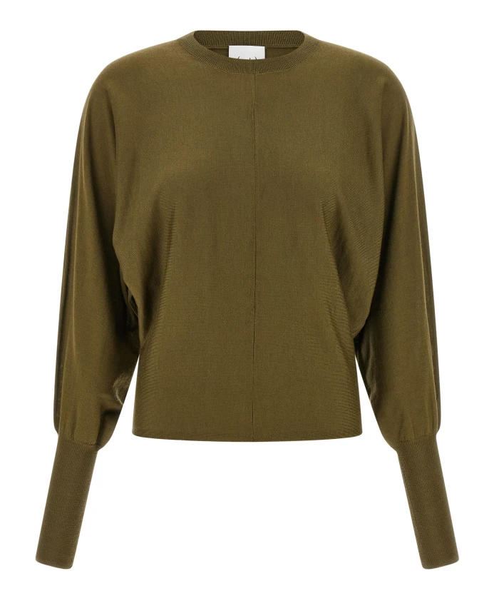 Шерстяной свитер телесного цвета - это вязаная модель с круглым вырезом, длинными широкими рукавами «летучая мышь» и ребристым низом. Его простой силуэт идеально подходит для многослойных образов. Ключевые особенности: Зеленый | Телесный | Шерсть | Ребристые рукава | Круглый вырез | Длинные широкие рукава «летучая мышь» | Размер и посадка: Стандартный крой | Материал и уход: 100% шерсть