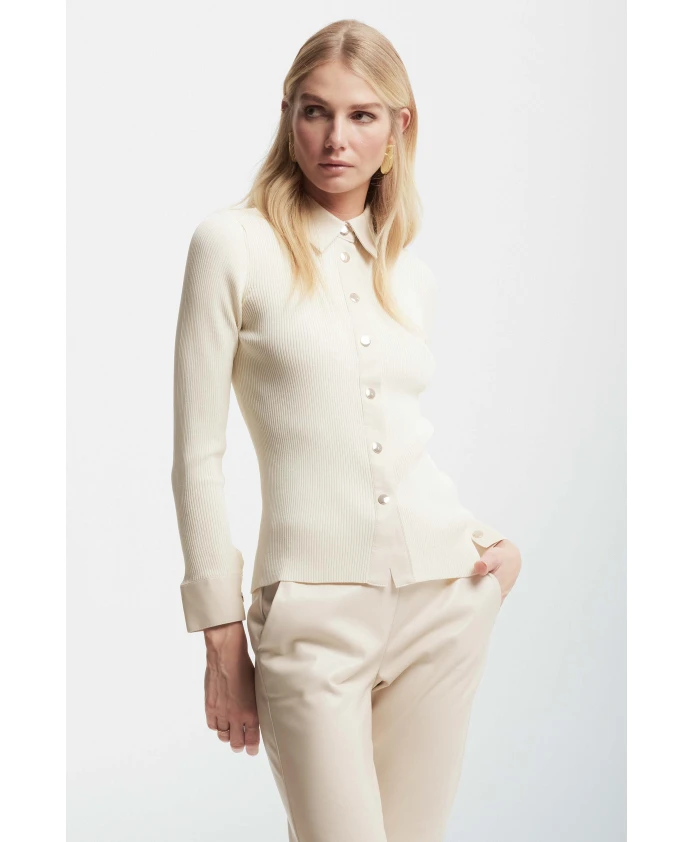 Откройте для себя ребристый свитер из вискозы с воротником-стойкой от Kocca - стильную вещь, идеально подходящую для многослойных образов. Этот свитер имеет приталенный крой и сочетает в себе комфорт и элегантный дизайн. Ключевые особенности: Белый | Ребристая вискозная ткань | Воротник-стойка | Застежка на пуговицы | Приталенный крой | Размеры и посадка: Приталенный крой