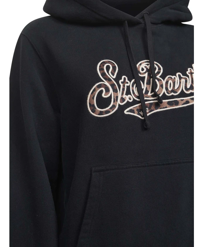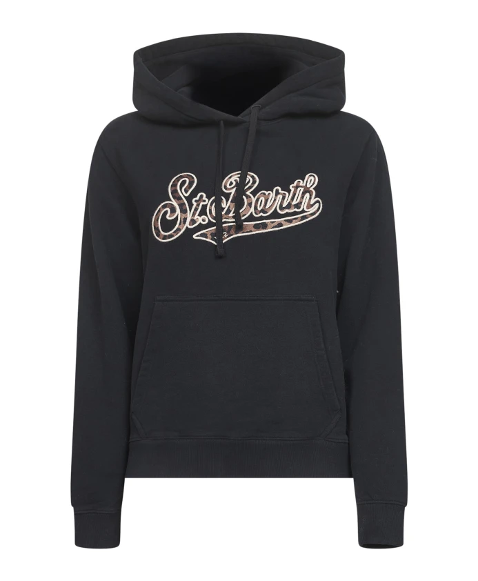 Свитер с леопардовым принтом, капюшоном и карманом. Mc2 Saint Barth, черный