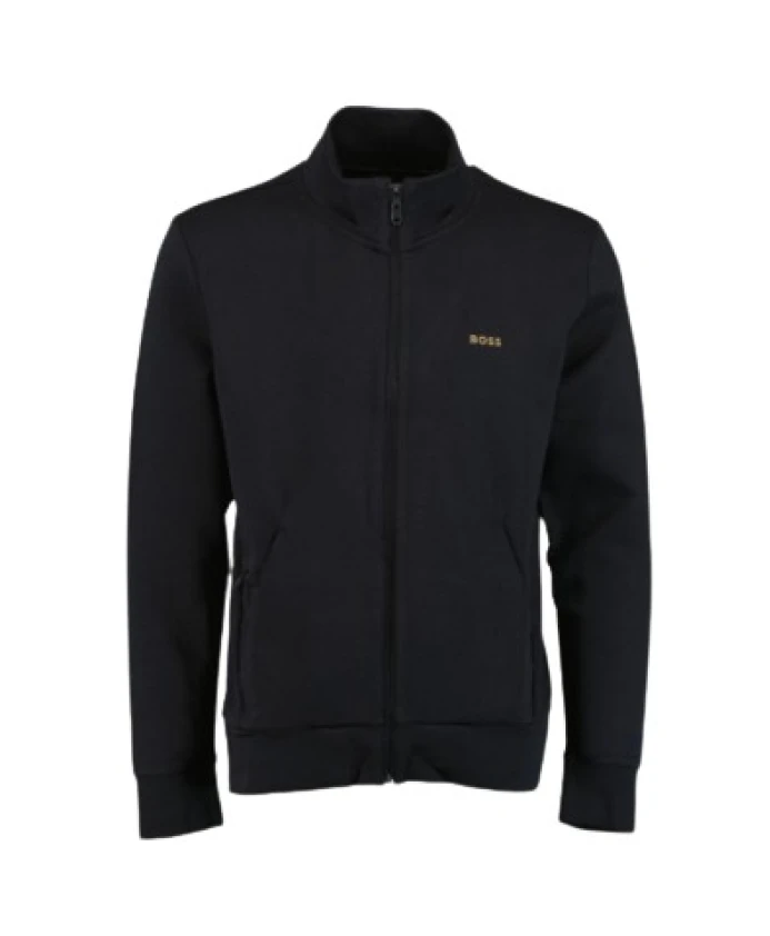 Эта мужская толстовка Hugo на молнии изготовлена из эластичной хлопковой ткани и имеет стандартный крой, что делает ее идеальной спортивной одеждой. Она оснащена скрытым карманом на молнии и многослойным логотипом, а также имеет воротник-стойку, застежку-молнию, нагрудные карманы на молнии, боковые карманы, длинные рукава с ребристыми манжетами и стандартную длину.