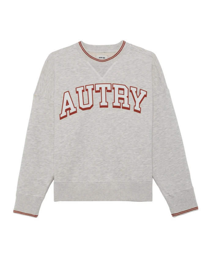 Оставайтесь стильными и чувствуйте себя комфортно в этой мужской толстовке Autry. Она имеет ребристый круглый вырез с контрастным полосатым узором, V-образный вырез, длинные рукава и свободный крой. На передней части нанесен логотип Autry методом трафаретной печати. Изготовлено в Тунисе из 90% хлопка и 10% полиамида. Доступна в сером цвете.