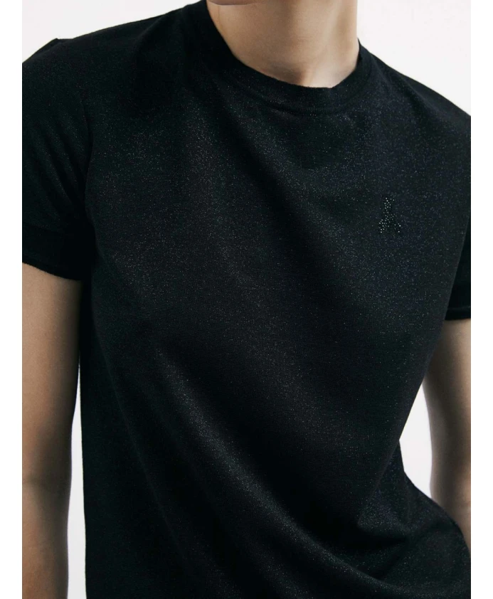 Подчеркните свой непринужденно элегантный стиль с помощью этого мягкого вискозного вязаного свитера от Patrizia Pepe. Украшенный фирменными стразами «Patrizia Pepe» на груди, с короткими рукавами и круглым вырезом, этот свитер сочетает в себе комфорт и стиль. Идеально подходит для изысканного, но в то же время непринужденного образа.