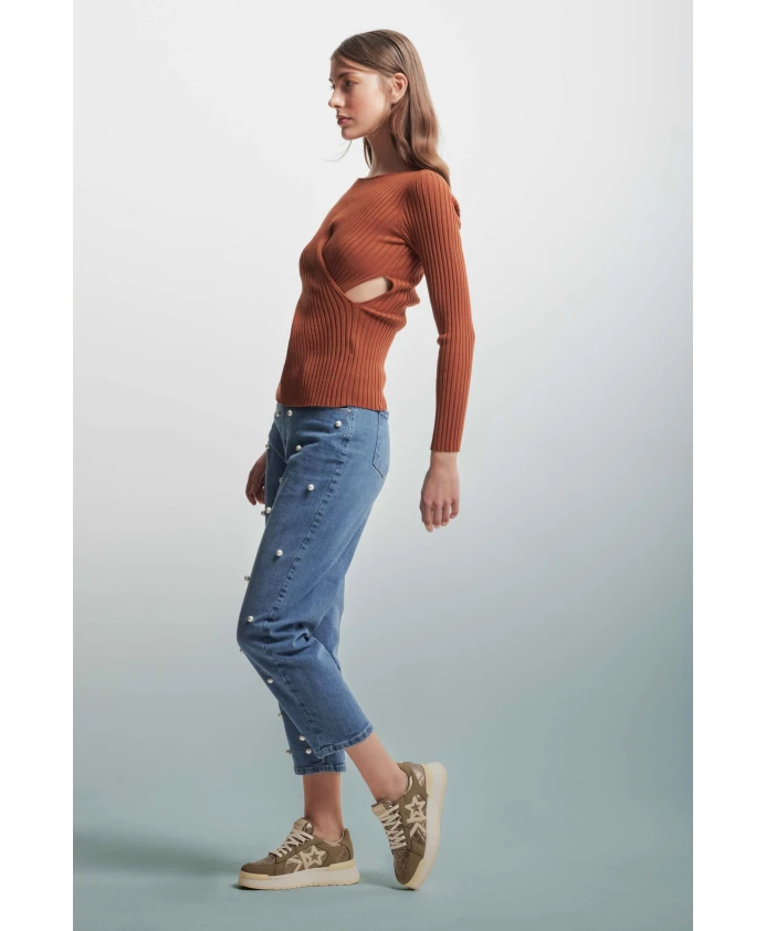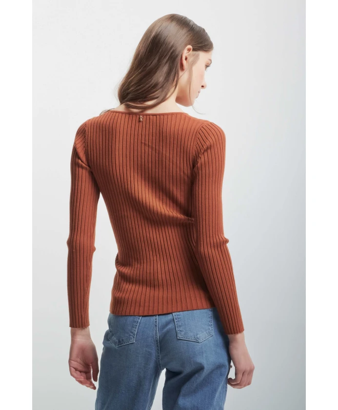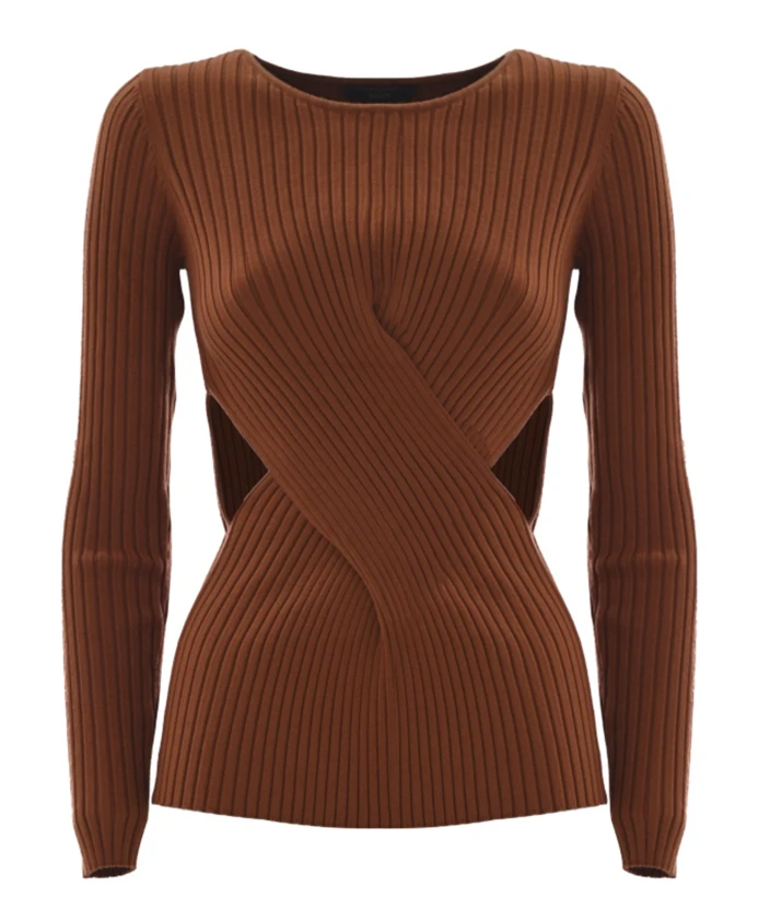 Ребристый вязаный свитер с косами Kocca, коричневый