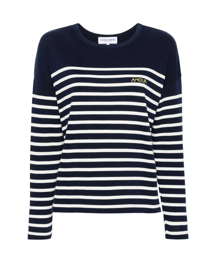 Хлопковый свитер в темно-синюю полоску Maison Labiche, мультиколор