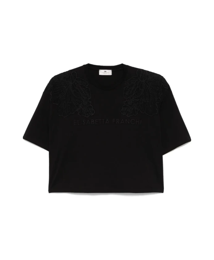 Добавьте элегантности своему повседневному образу с помощью этого хлопкового свитера Elisabetta Franchi с контрастным логотипом, который станет стильным акцентом. Основные характеристики: Черный | Хлопок | Круглый вырез | Короткие рукава | Детали на плечах | Состав и уход: 100% хлопок