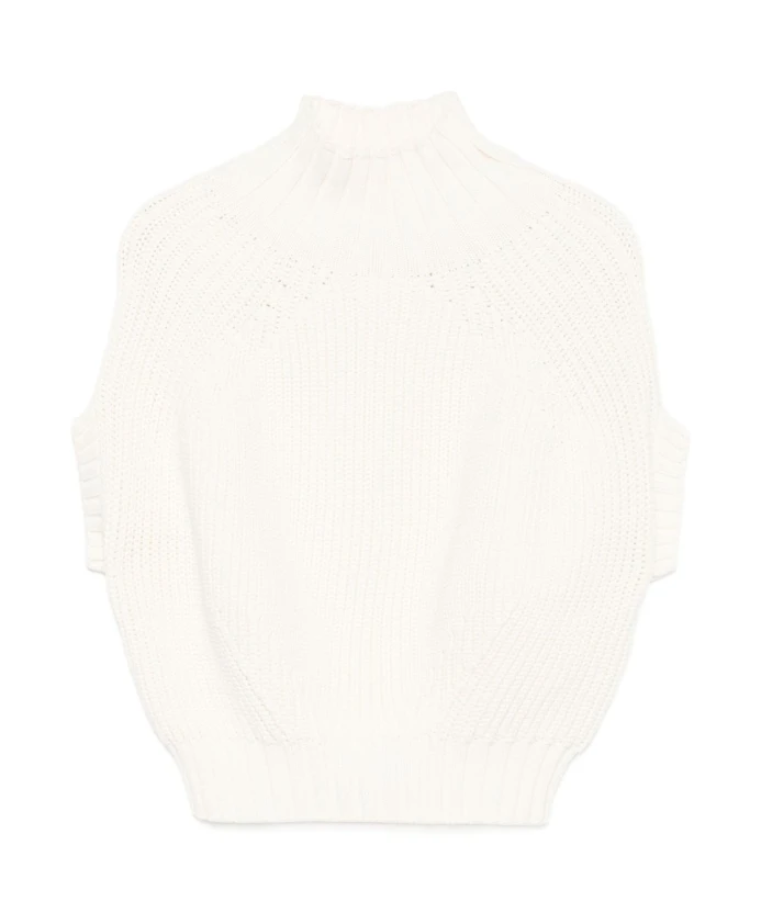 Белый хлопковый свитер со стоячим воротником Sportmax, белый