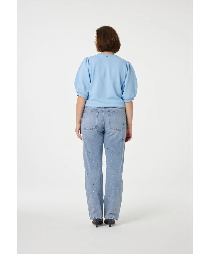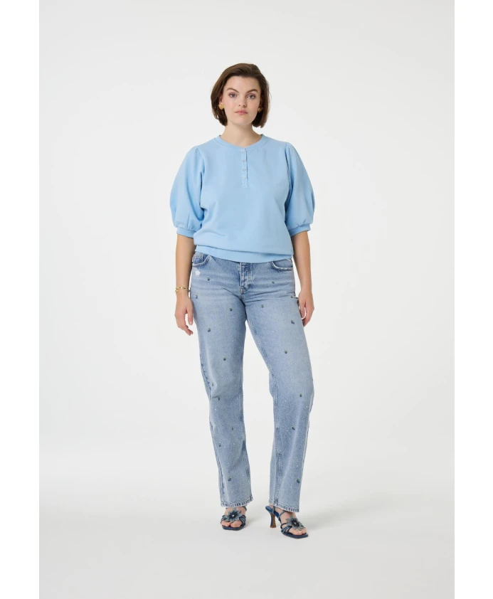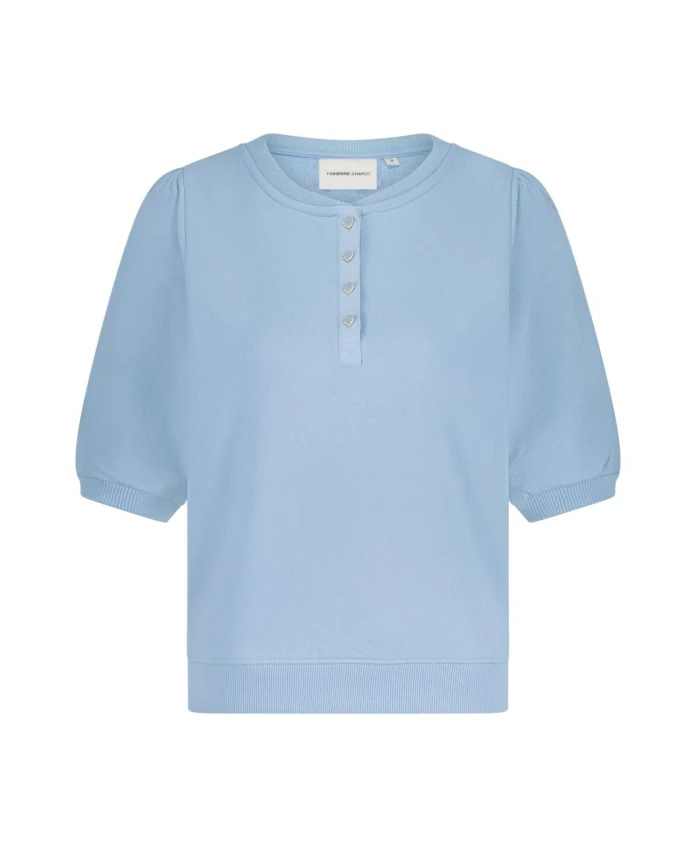 Этот светло-голубой свитер с короткими рукавами имеет стандартный крой и изготовлен из органического хлопка для максимального комфорта. Идеальная базовая вещь для солнечных дней, его легко сочетать с любимыми джинсами или шортами для создания повседневного, стильного образа.