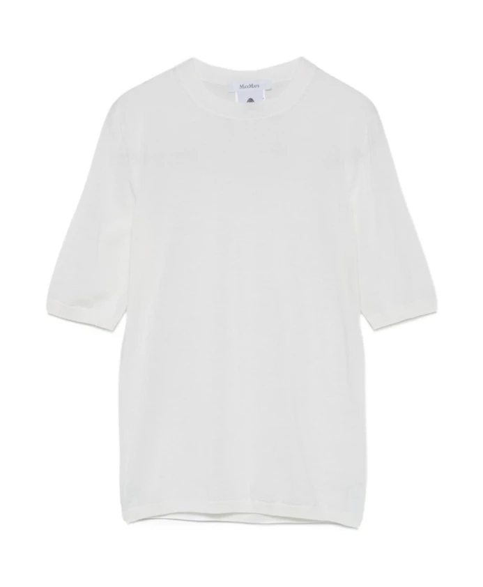 Подчеркните свой стиль с помощью этой шерстяной блузки с короткими рукавами от итальянского бренда Max Mara. Классический белый цвет, круглый вырез и вязаный узор - эта блузка изготовлена из 100% чистой шерсти, что придает ей изысканный вид. Идеально подходит для модниц.