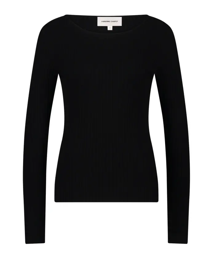 Этот черный свитер имеет приталенный силуэт и привлекательный вырез-лодочку. Изготовленный из мягкой, эластичной ткани, это универсальная вещь, которая отлично смотрится как в многослойных образах, так и сама по себе. Простой, вневременной и невероятно универсальный.