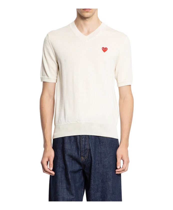 Вязаный свитер с красной эмблемой Comme Des Garã§Ons Play, белый