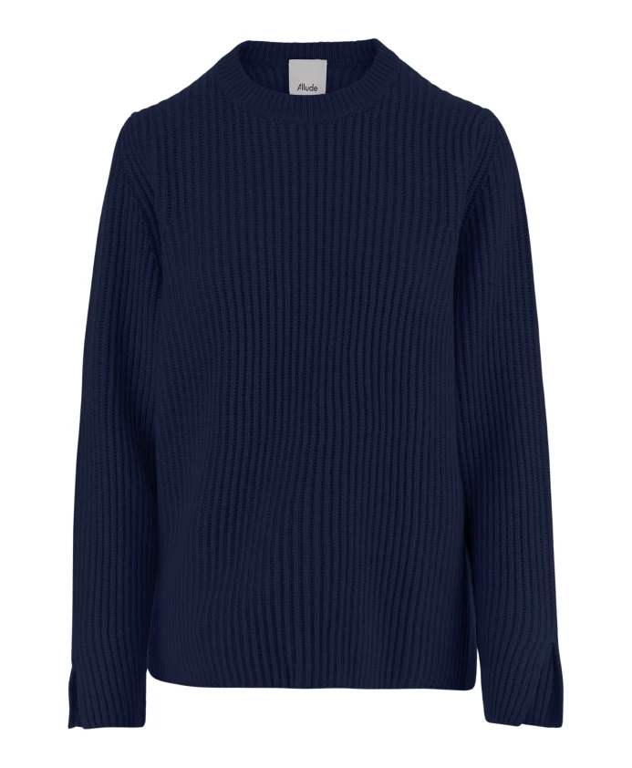 Рваный шерстяно-кашемировый свитер, темно-синий Allude, синий 32 946₽