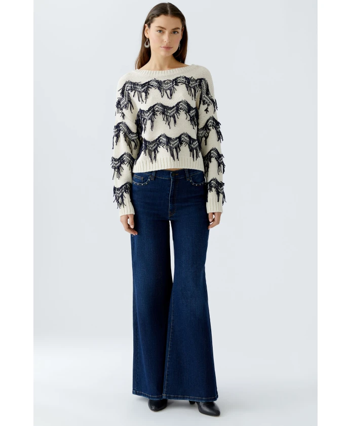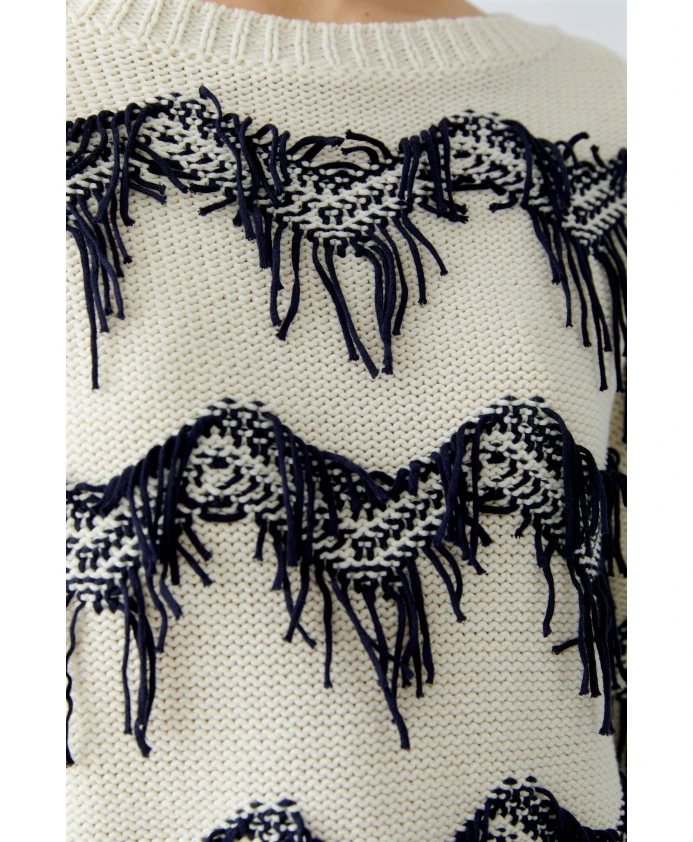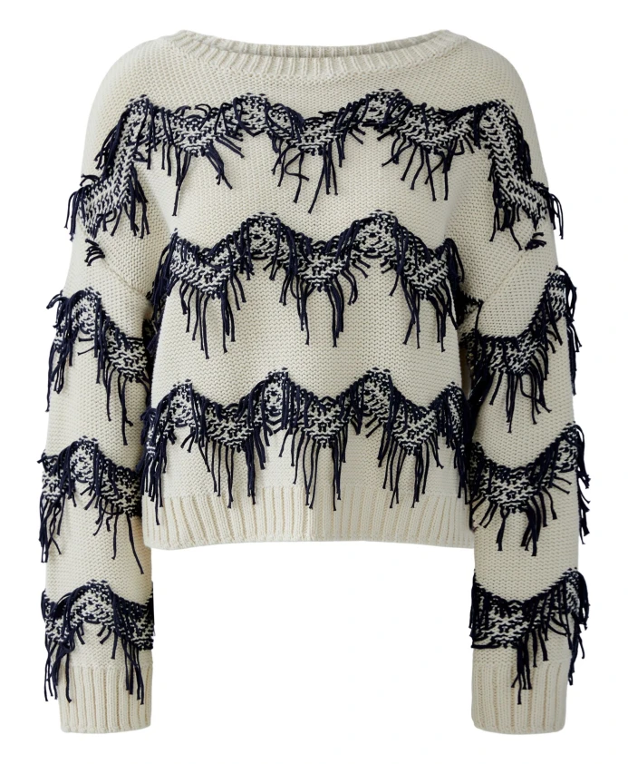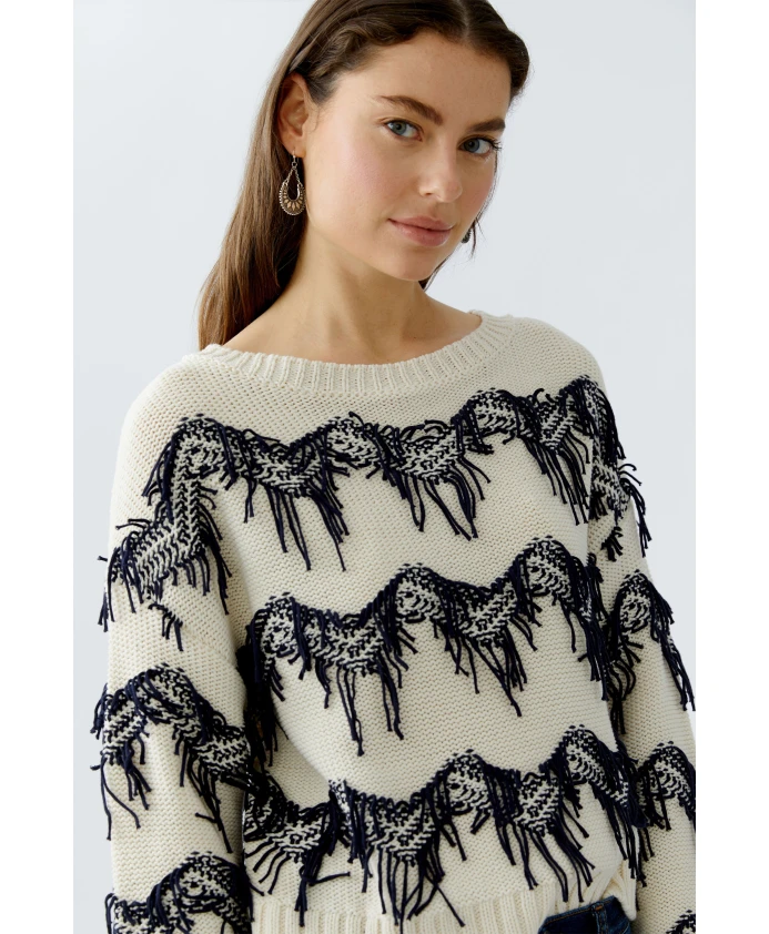 Хлопковый свитер с бахромой Oui, белый