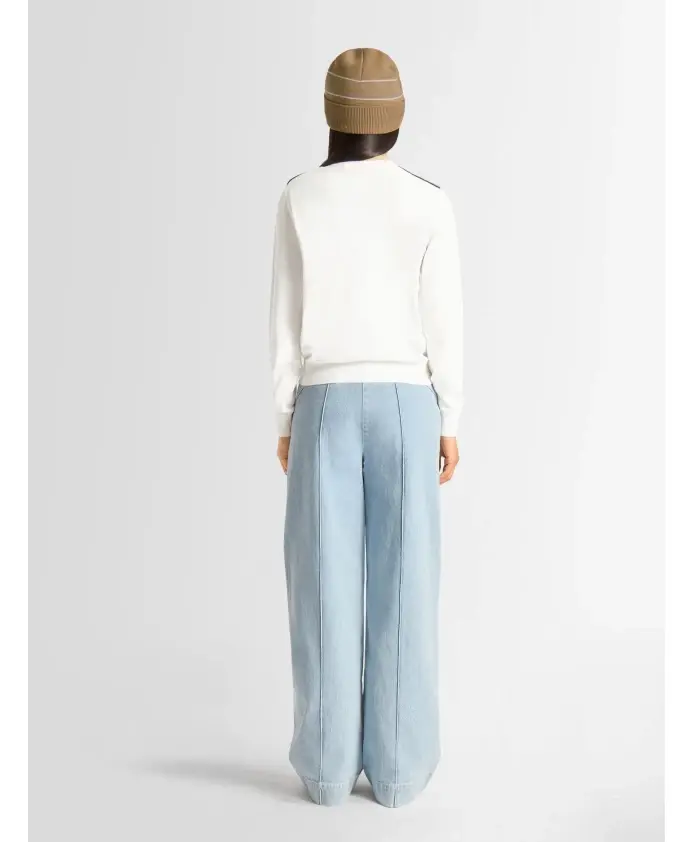 Свитер Ottavia идеально воплощает в себе культовую элегантность этого дома моды. Изготовленный из тонкой вязки и трикотажа, он имеет фирменную оттоманскую вязку с изнаночной стороны и отделан интарсией на плечах, что придает ему неповторимый вид.