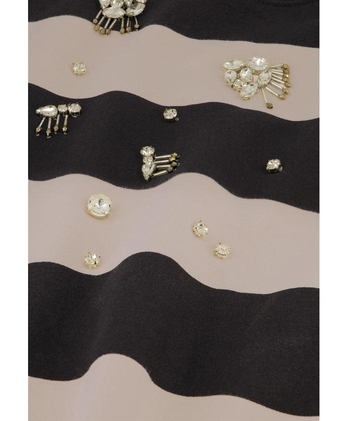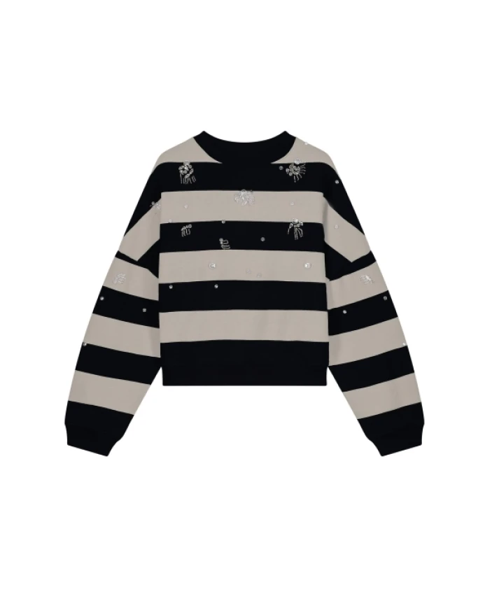 Этот черно-белый полосатый свитер изготовлен из 100% органического хлопка и украшен блестящими деталями спереди. Свободный крой обеспечивает дополнительный комфорт. Сочетайте его с любимыми джинсами для создания повседневного образа с изюминкой.