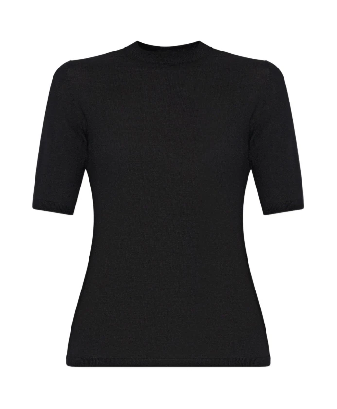 Топ Max Mara Gerico, произведенный в Италии, имеет высокий черный воротник, короткие рукава и ребристую отделку. Изготовленный из 100% натуральной шерсти, этот продукт был оценен Cenere GB как обладающий высокими стилистическими достоинствами.