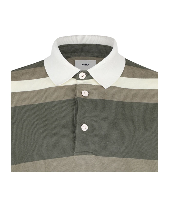 Подчеркните свой стиль с помощью поло Autry Stripe Pattern. Это разноцветное хлопковое поло имеет классический воротник-поло, застежку на пуговицах спереди, длинные рукава, эластичные манжеты и полосатый узор с логотипом на передней части.