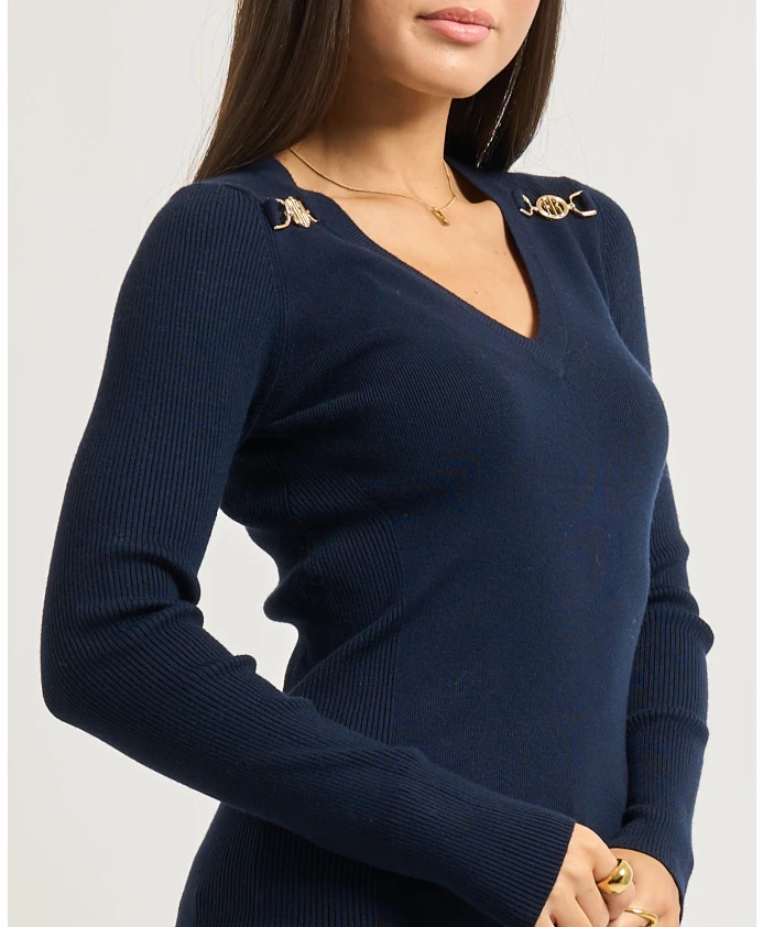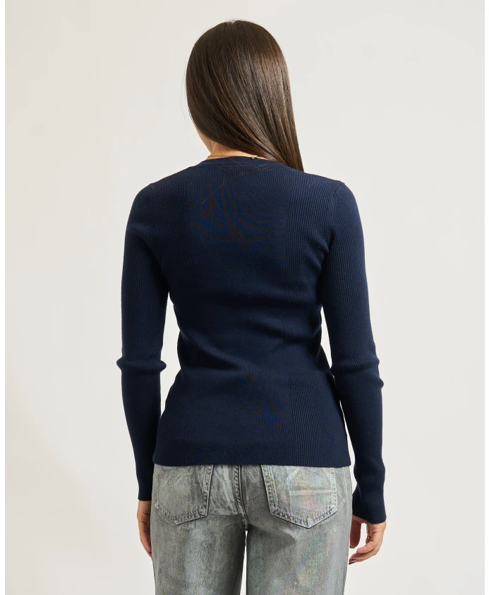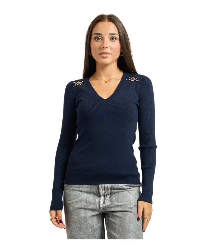 Свитер Fracomina с металлизированными деталями - вязаный свитер с V-образным вырезом, который добавит легкого мерцания повседневным нарядам. Ключевые особенности: Синий | V-образный вырез | Вязаная текстура | Металлизированные детали