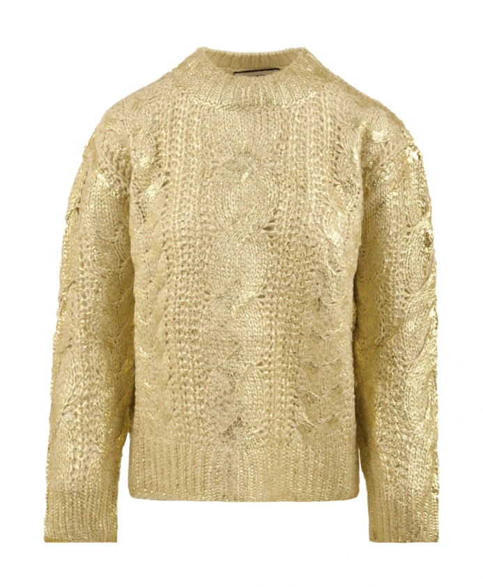 Подчеркните свой стиль с помощью золотистого трикотажного свитера с круглым вырезом от Akep для женщин. Изготовленный из высококачественной ткани, этот свитер идеально подойдет для того, чтобы добавить нотку гламура в ваш гардероб.